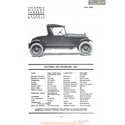 Doc Technique - Plan De Graissage - Identification Plaques pour Columbia Six Roadster 20e Fiche Info 1920