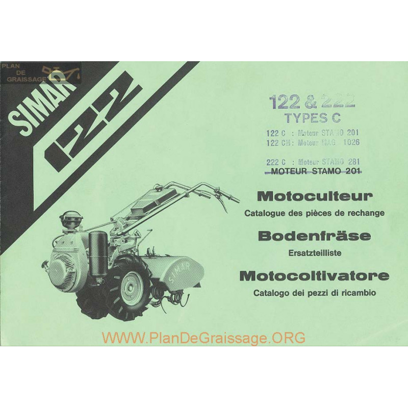 Publications de documents anciens et introuvables sur nos véhicules Oldtimers, des plans, fiches, schémas de graissage, lubrication charts, des fiches descriptives, des fiches techniques, des informations pour le réglage moteur pour Simar 122 222 Stano 201 Mag 1026 Motoculteur Pieces Rechange Information de WWW.PLANDEGRAISSAGE.ORG.