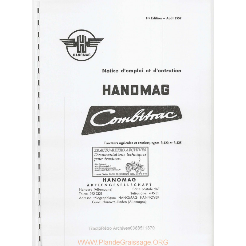 Publications de documents anciens et introuvables sur nos véhicules Oldtimers, des plans, fiches, schémas de graissage, lubrication charts, des fiches descriptives, des fiches techniques, des informations pour le réglage moteur pour Hanomag R420 R425 Part1