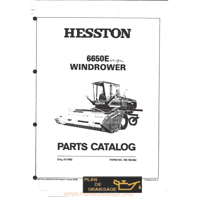 Publications de documents anciens et introuvables sur nos véhicules Oldtimers, des plans, fiches, schémas de graissage, lubrication charts, des fiches descriptives, des fiches techniques, des informations pour le réglage moteur pour Hesston 6650 E Windrower