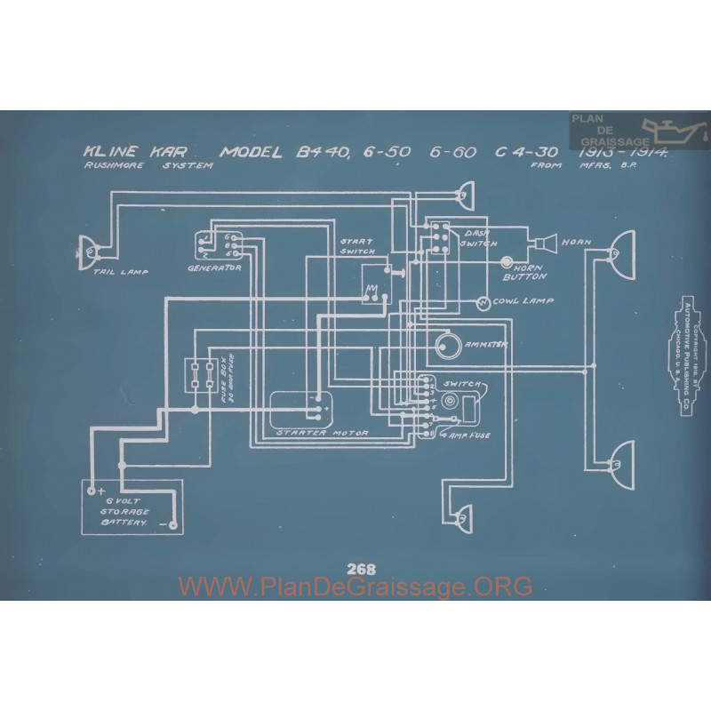 Publications de documents anciens et introuvables sur nos véhicules Oldtimers, des plans, fiches, schémas de graissage, lubrication charts, des fiches descriptives, des fiches techniques, des informations pour le réglage moteur pour Kline Kar B4 40 6 50 60 C4 30 Schema Electrique 1913 1914 Information de WWW.ARCHIVE.ORG, Scanning Google