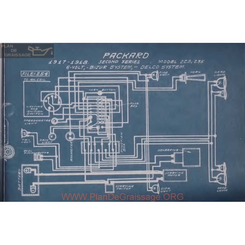 Publications de documents anciens et introuvables sur nos véhicules Oldtimers, des plans, fiches, schémas de graissage, lubrication charts, des fiches descriptives, des fiches techniques, des informations pour le réglage moteur pour Packard 225 235 Second 6volt Schema Electrique 1917 1918 Bijur Information de WWW.ARCHIVE.ORG, Scanning Google