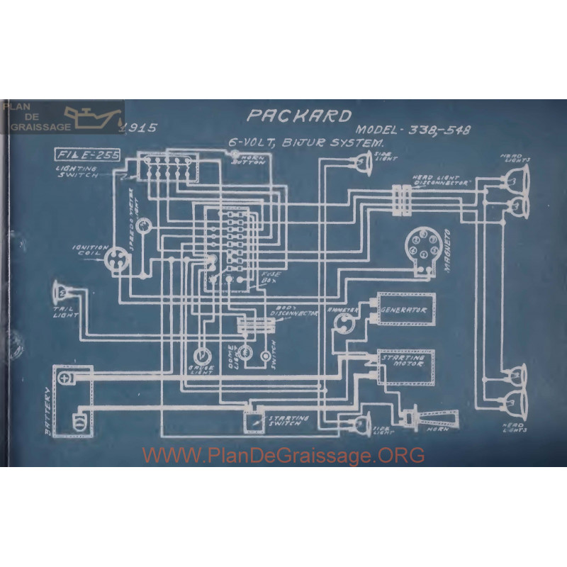Publications de documents anciens et introuvables sur nos véhicules Oldtimers, des plans, fiches, schémas de graissage, lubrication charts, des fiches descriptives, des fiches techniques, des informations pour le réglage moteur pour Packard 338 548 6volt Schema Electrique 1915 Bijur Information de WWW.ARCHIVE.ORG, Scanning Google