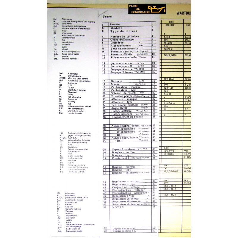 Publications de documents anciens et introuvables sur nos véhicules Oldtimers, des plans, fiches, schémas de graissage, lubrication charts, des fiches descriptives, des fiches techniques, des informations pour le réglage moteur pour Wartburg Knight 1968