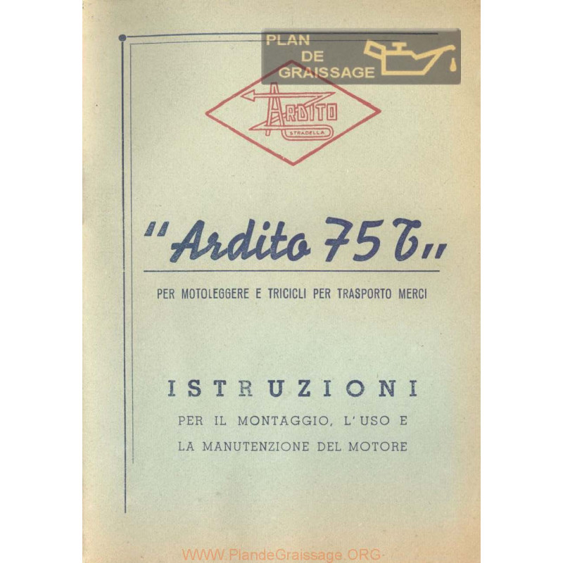 Publications de documents anciens et introuvables sur nos véhicules Oldtimers, des plans, fiches, schémas de graissage, lubrication charts, des fiches descriptives, des fiches techniques, des informations pour le réglage moteur pour Ardito 75cc Motore Ma