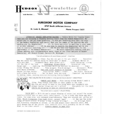 Publications de documents anciens et introuvables sur nos véhicules Oldtimers, des plans, fiches, schémas de graissage, lubrication charts, des fiches descriptives, des fiches techniques, des informations pour le réglage moteur pour Hudson Vol8 No6 Nov 1952