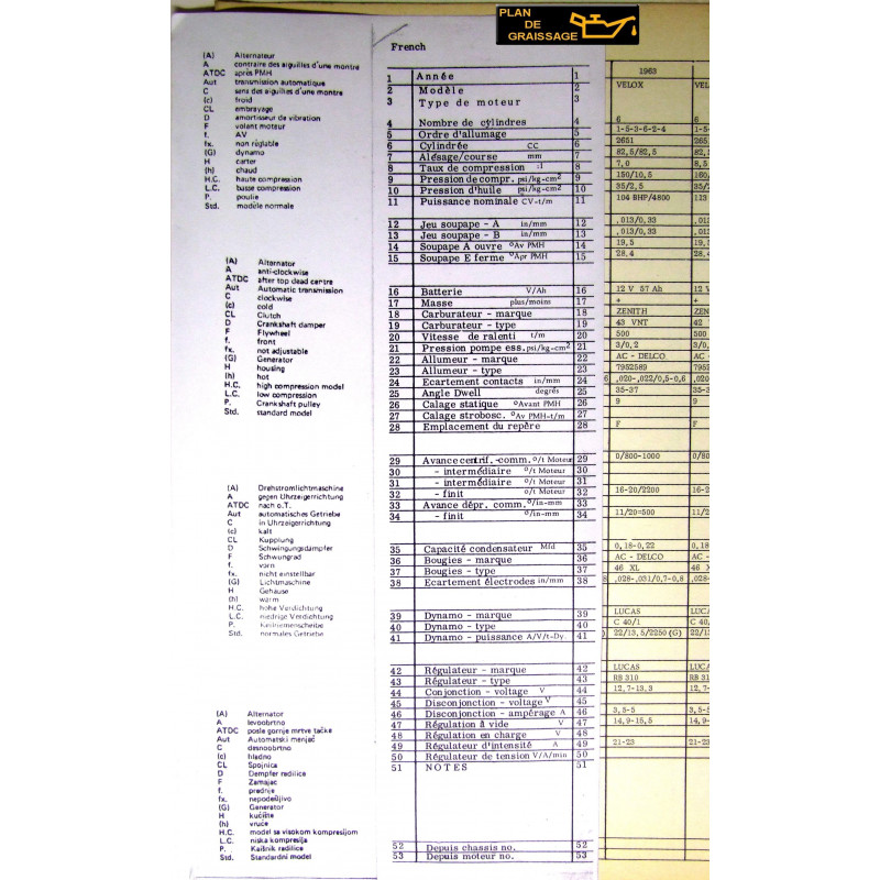Publications de documents anciens et introuvables sur nos véhicules Oldtimers, des plans, fiches, schémas de graissage, lubrication charts, des fiches descriptives, des fiches techniques, des informations pour le réglage moteur pour Vauxhall Velox 104cv 1963